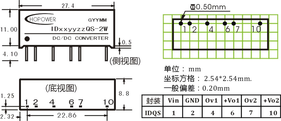 • 定电压输入双隔离稳压 双输出,输出功率 2W。